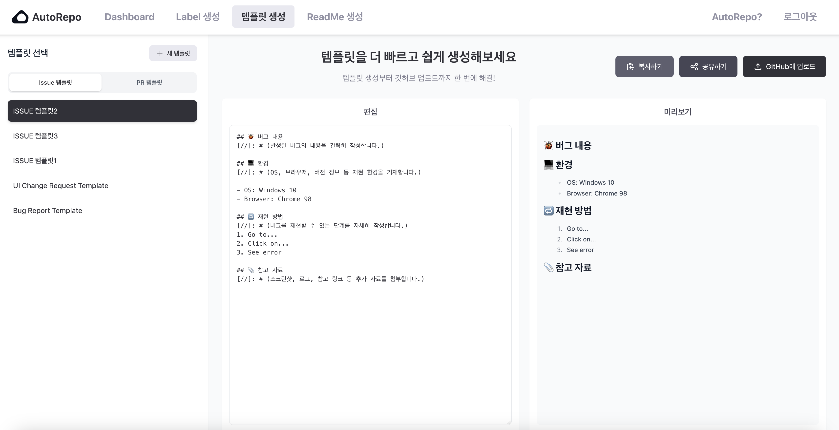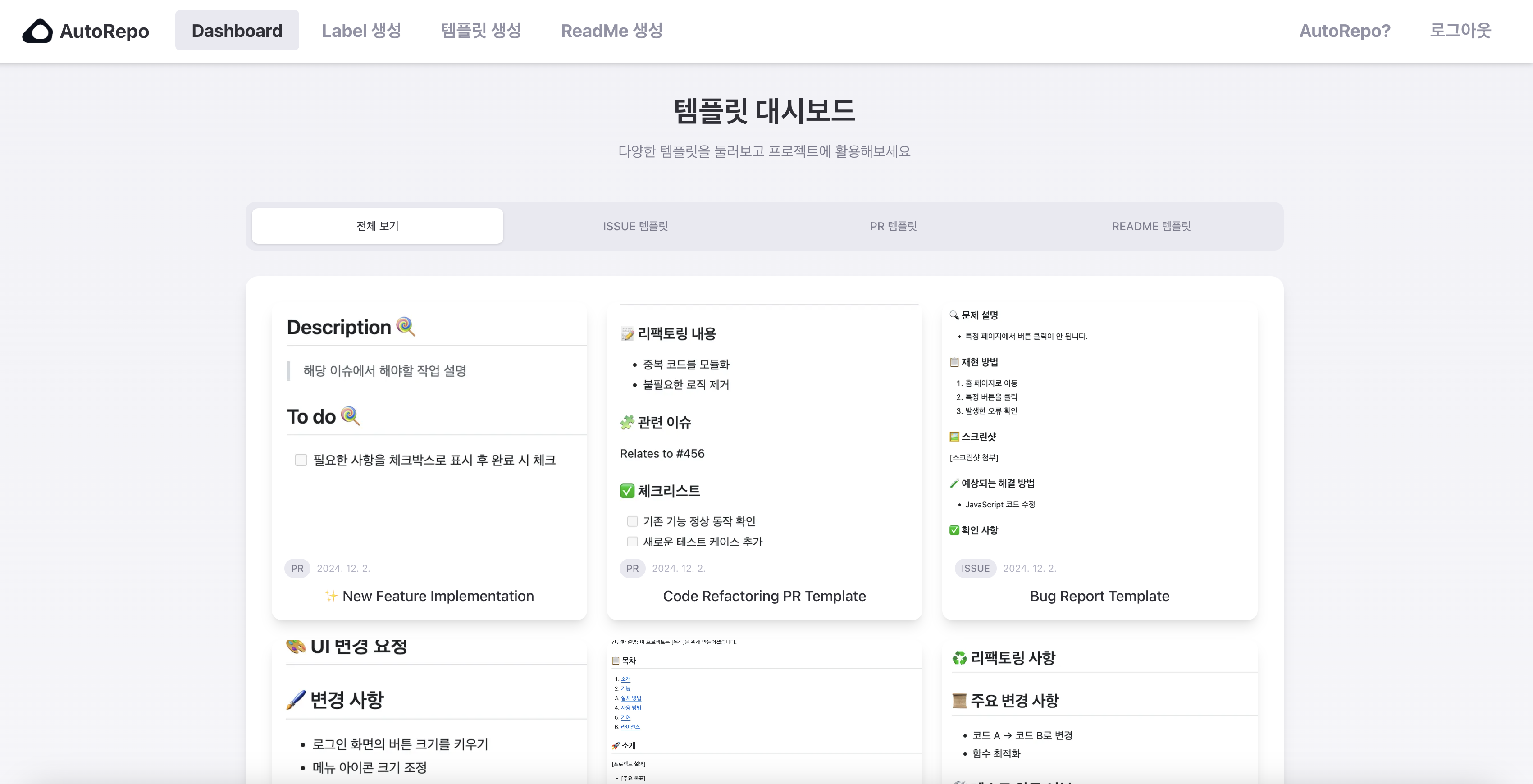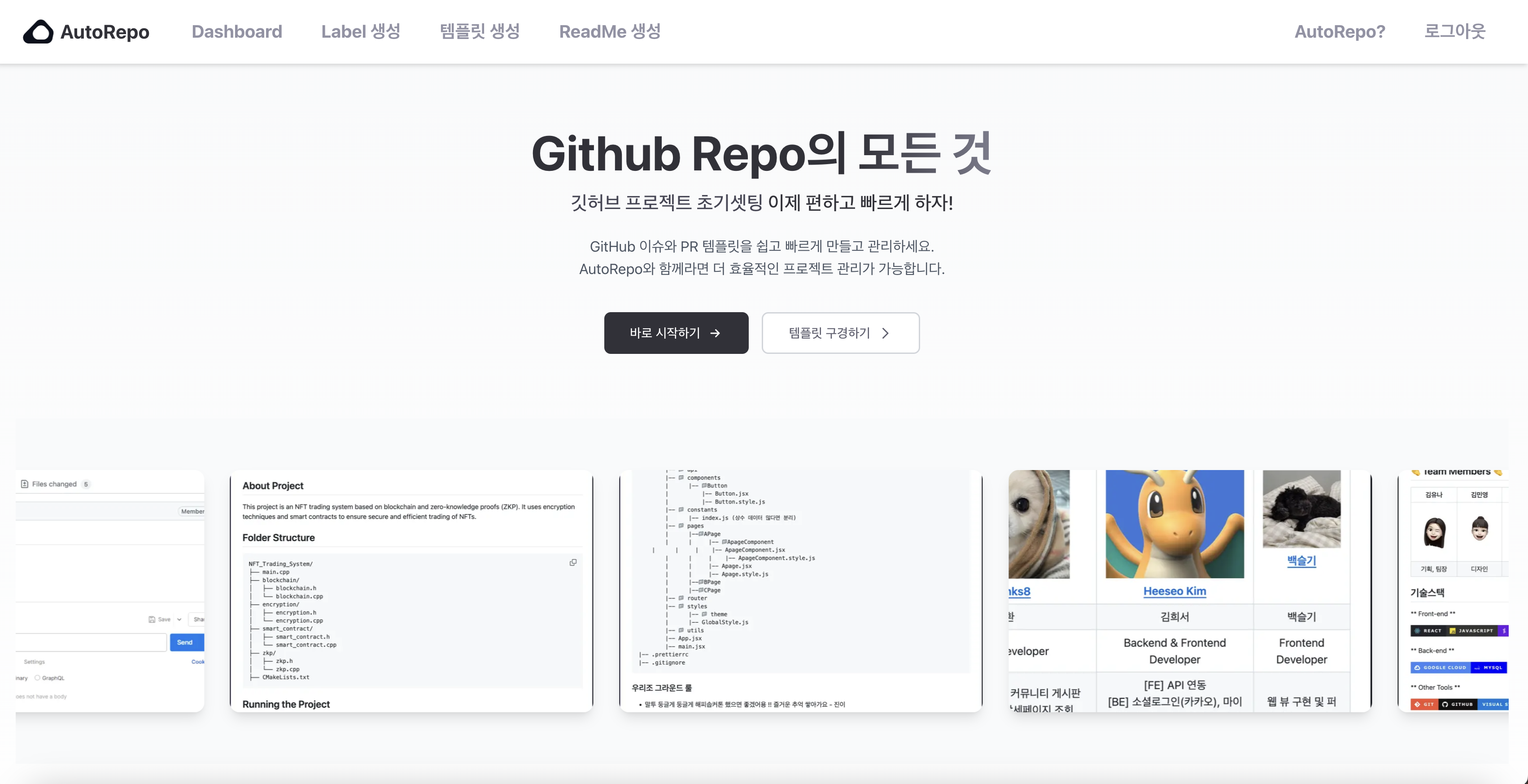 깃허브 연동으로 딸깍 한 번이면 세팅이 끝나는 '레포 세팅 자동화 서비스 AutoRepo' 입니다! 🔗 AutoRepo 사용해보기