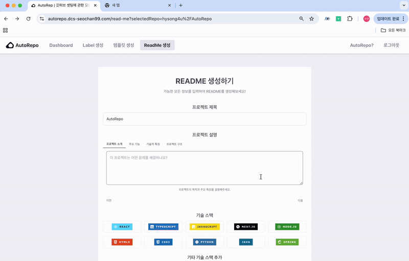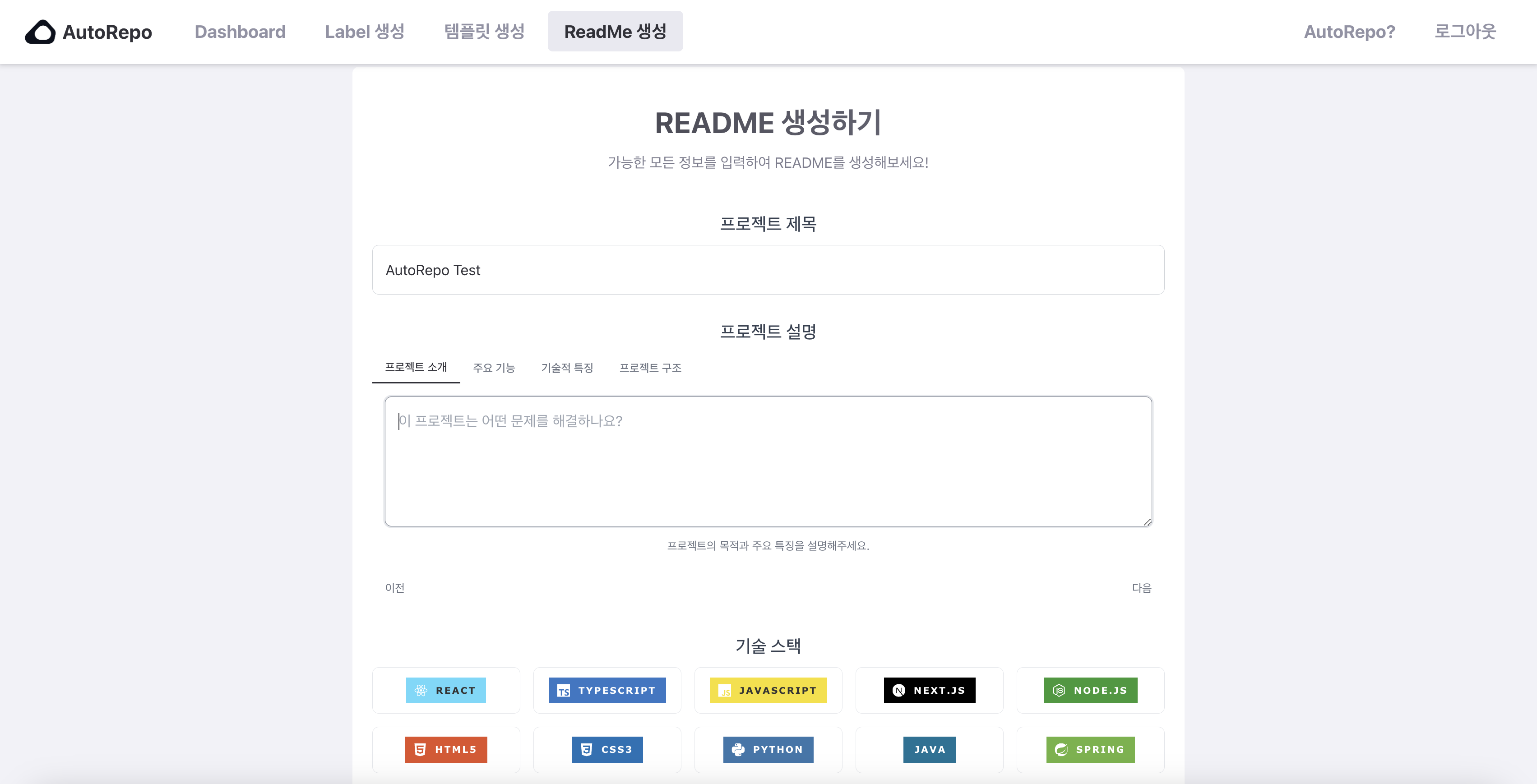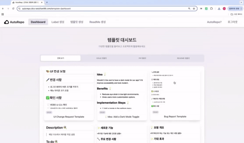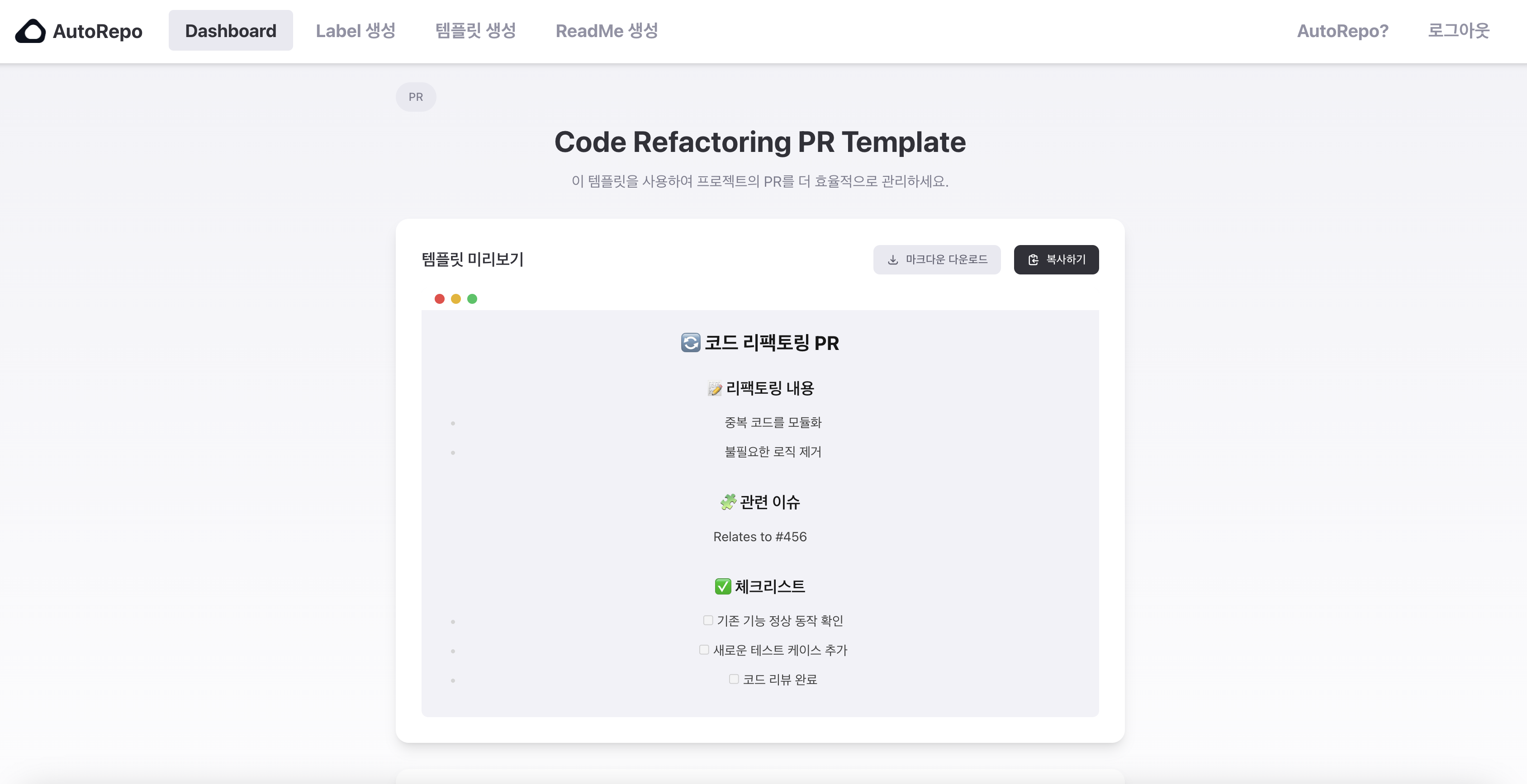 깃허브 연동으로 딸깍 한 번이면 세팅이 끝나는 '레포 세팅 자동화 서비스 AutoRepo' 입니다! 🔗 AutoRepo 사용해보기
