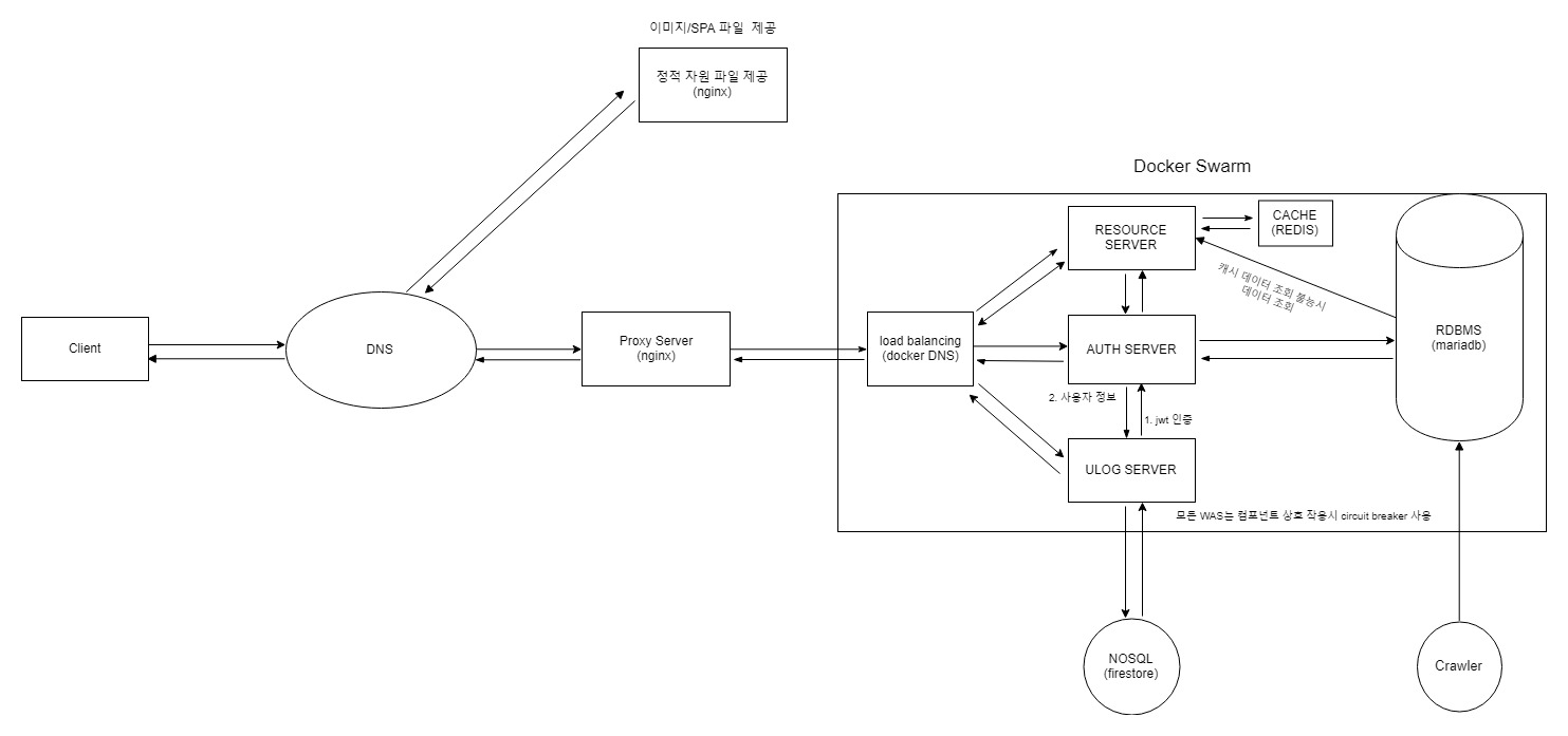 reverse proxy로 인증 서버와 리소스 서버에 해당하는 docker service를 매핑